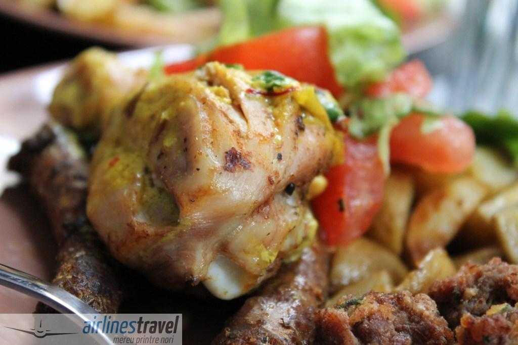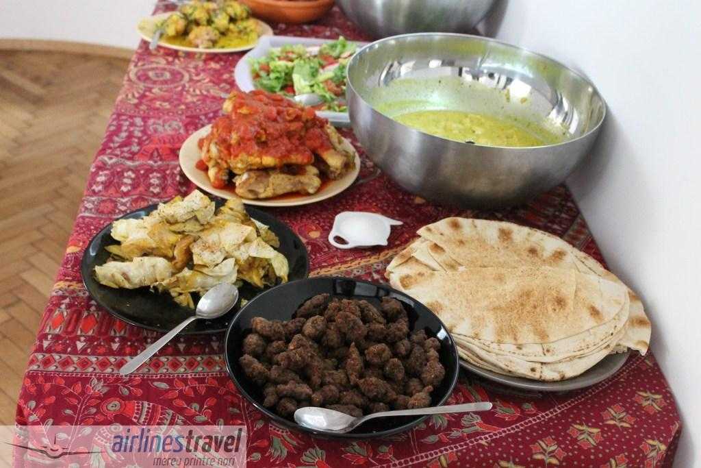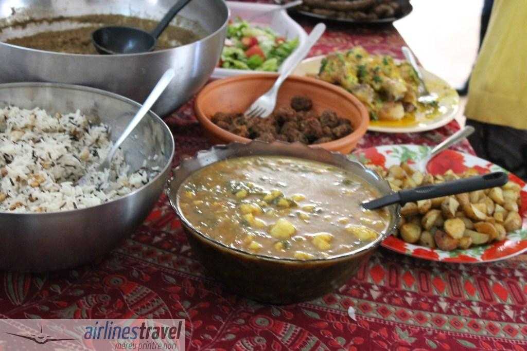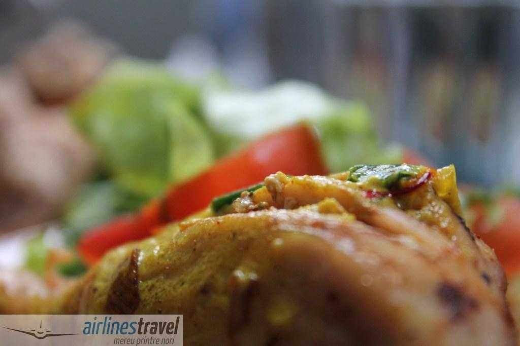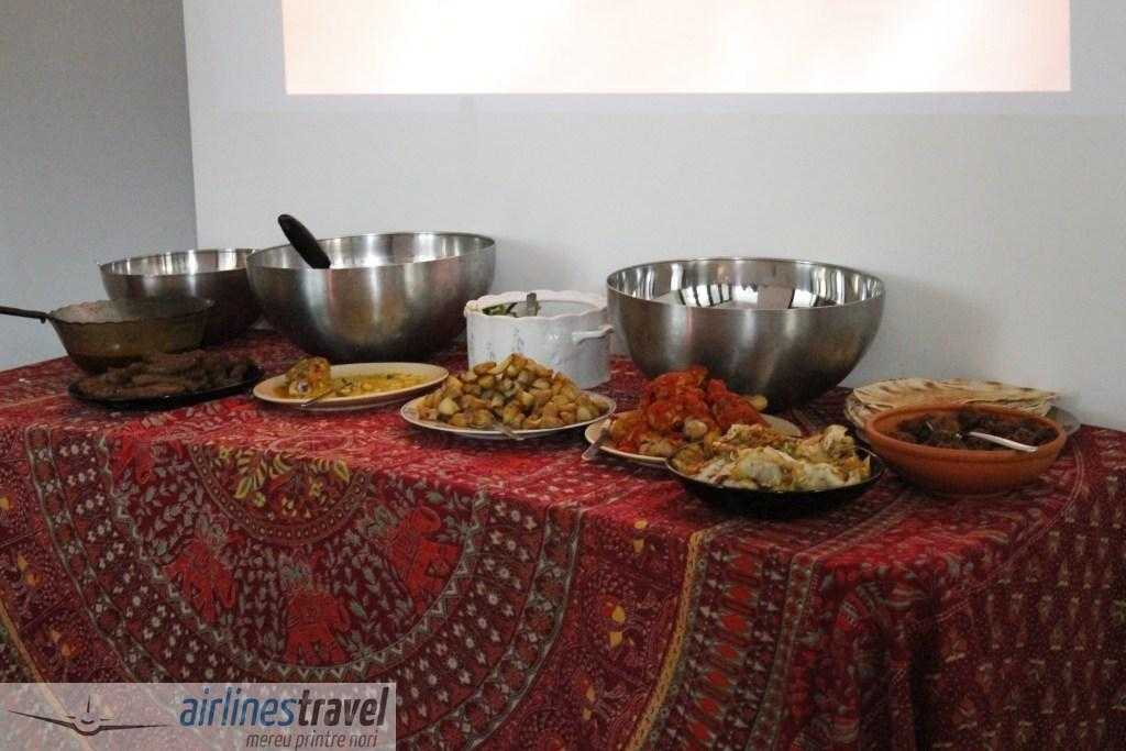 Am gustat pui, salată, chifteluţe, cârnăciori şi cartofii noi uşor picanţi. Cel mai mult mi-au plăcut cârnăciorii Indian Masala Sausage. Am aflat că au fost marinaţi în tot felul de mirodenii şi apoi copţi până a ieşit toată grăsimea din ei. Au rămas cărnoşi şi uşor picanţi. La fel de bune au fost şi chifteluţele cu carne de berbecuţ – Tikka Meatrolls. Pe durata întregului eveniment, am servit un ceai indian, iar la final am avut un desert delicios – îngheţata Kulfi. Toate preparatele au fost foarte bune. Un singur preparat nu am degustat – mâncarea de linte.
