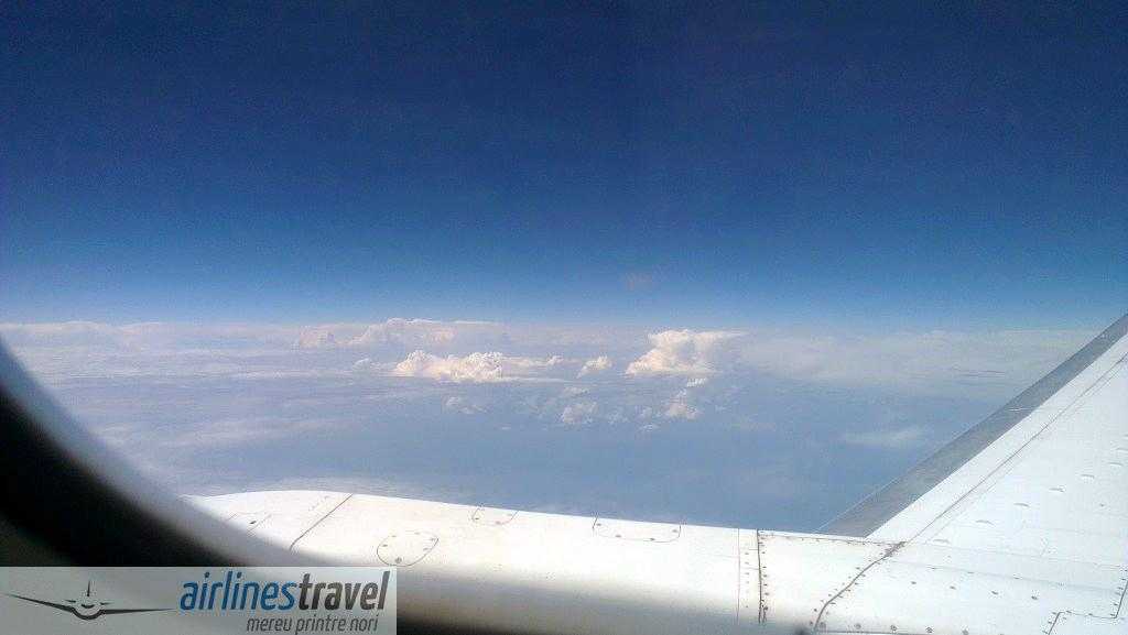 Aeronava are vârsta de aproximativ 18 ani, dar se descurcă bine şi este întreţinută ok. Este configurată într-o singură clasă, în format 3-3, oferind suficient spaţiu la picioare. Am fost plăcut impresionat de echipajul de cabină (fete drăguţe, mereu cu zâmbetul pe buze şi prietenoase), de modul în care comunică piloţii, dar şi de servicii.