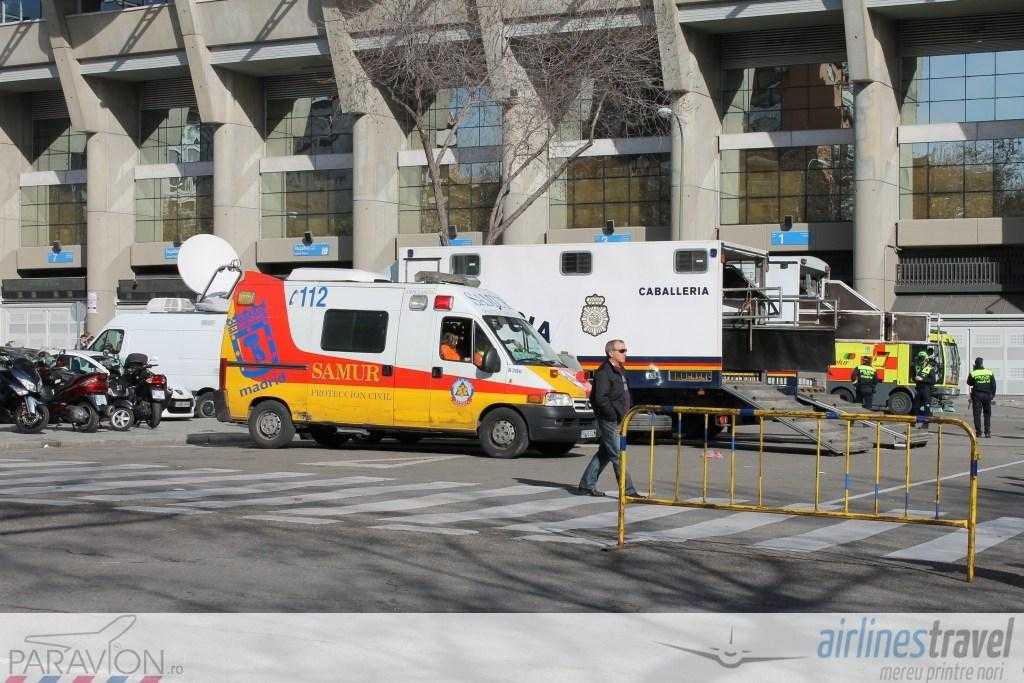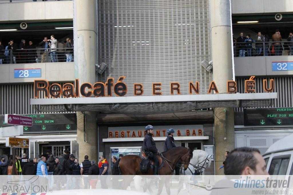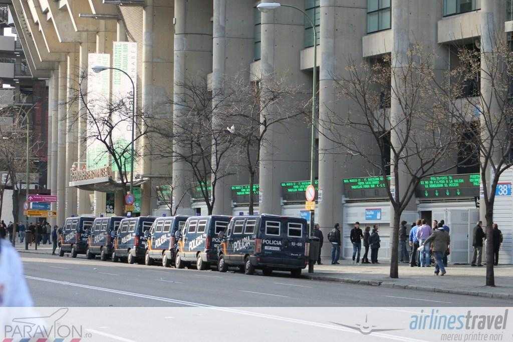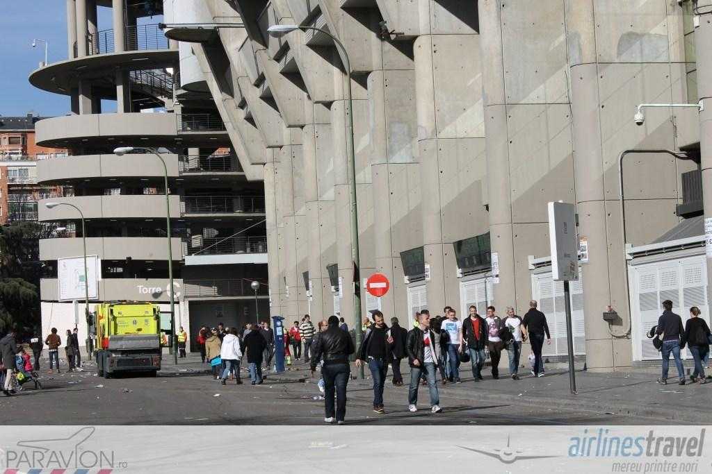 Am făcut o tură de stadion, l-am fotografiat pe toate părţile şi am analizat fiecare mişcare din jurul acestuia. În primul rând, Santiago Bernabéu este un stadion foarte bine izolat fonic. Cu excepţia ţipetelor de la goluri, în exterior nu se aude nimic. Spaniolii nu vin cu maşinile la stadion, nu există prea multe locuri de parcare. Însă am văzut foarte multe scutere şi motociclete. Plus că ei folosesc foarte mult Metro de Madrid, mijloacele de transport în comun. În jurul stadionului nu am văzut taxiuri parcate ca la noi, nu există aşa ceva. Acestea vin doar la comandă.