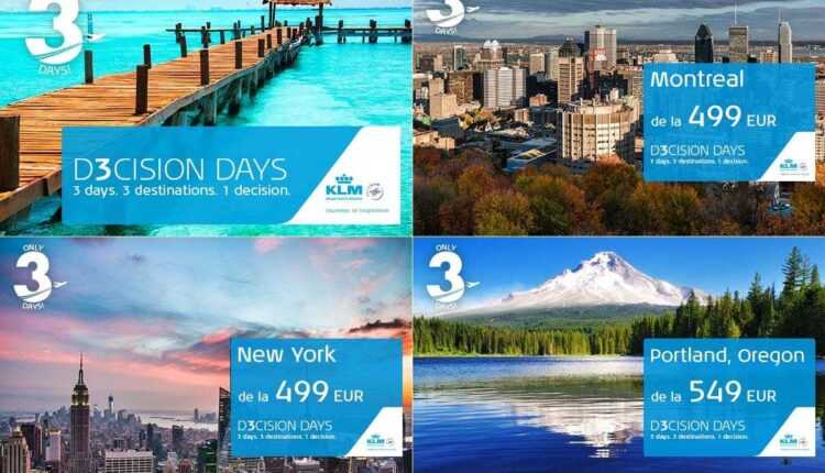 KLM revine cu oferta – 3 zile / 3 destinaţii. În perioada 3-5 iulie 2014, veţi putea achiziţiona bilete spre 3 destinaţii din America de Nord: