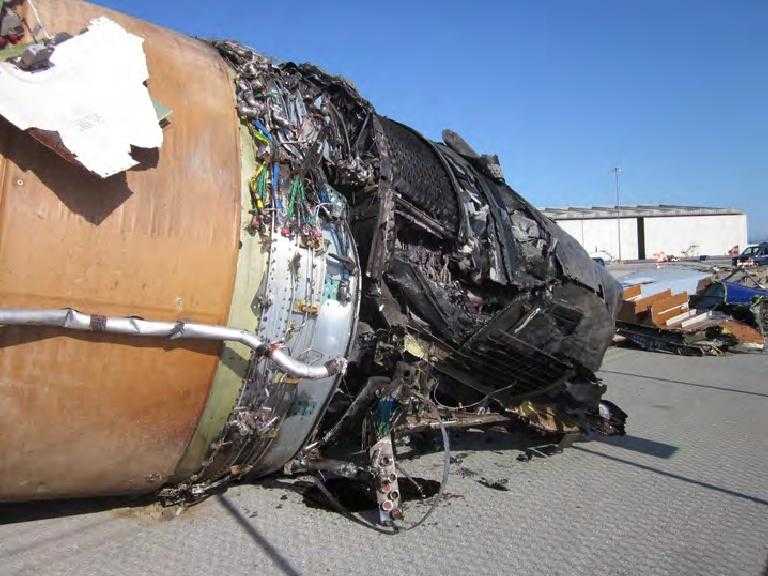 Rămăşiţele aeronavei Boeing 777-200ER Asiana Airlines implicată în accidentul din 6 iulie 2013